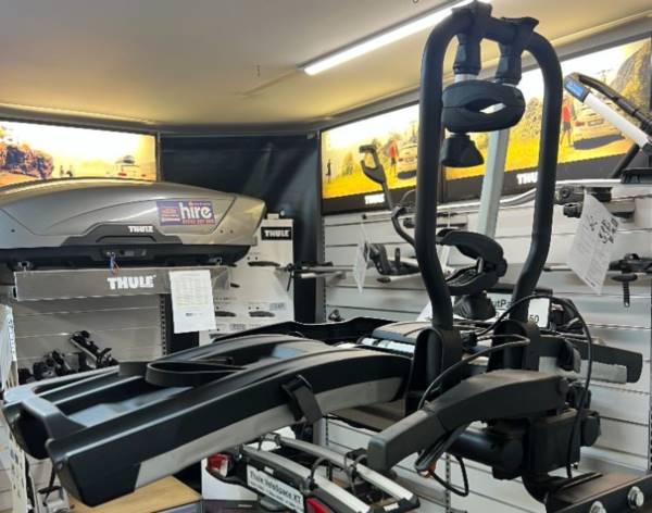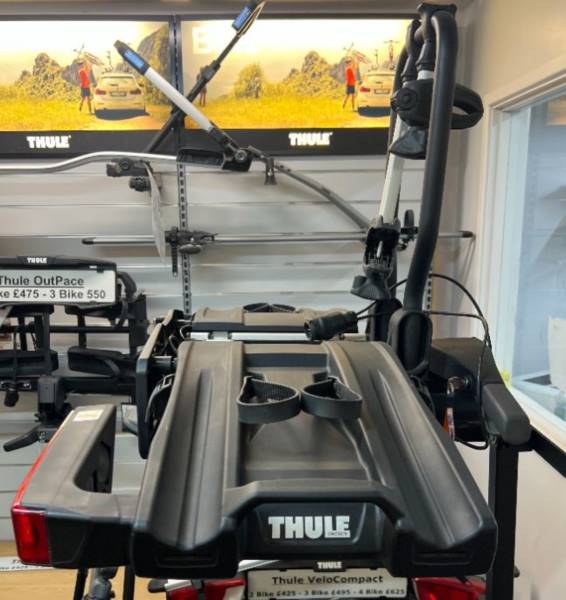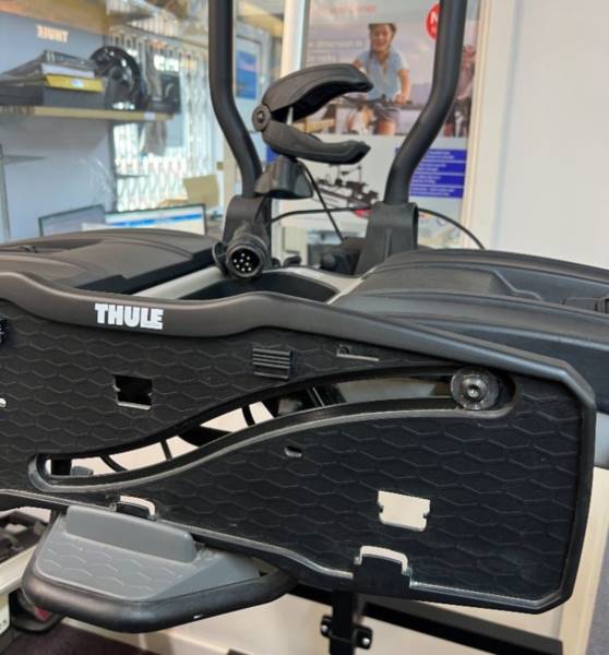 • - Easy mounting of bikes through detachable bike arms with lockable Thule AcuTight torque limiter knobs that click when optimal torque is reached